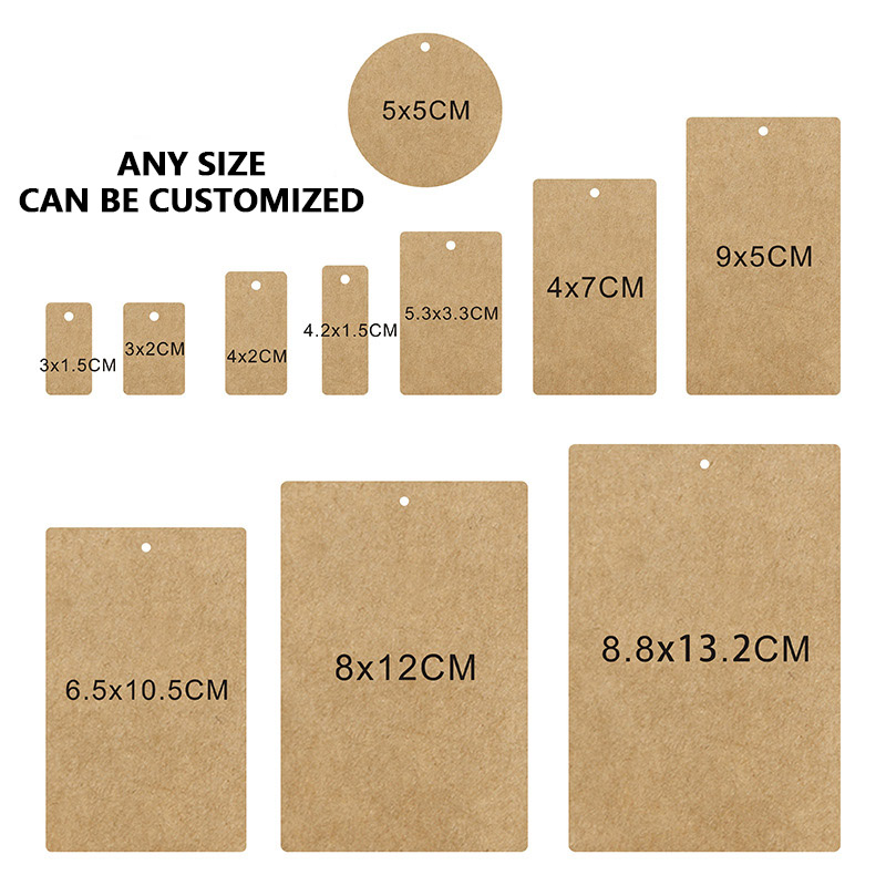 Fitur: Tag Kertas Garmen Ramah Lingkungan tebal dan kuat, tidak beracun dan tidak berasa, tahan terhadap kerutan dan sobek, mudah ditulis, tidak ada masalah pendarahan tinta, tahan lama.