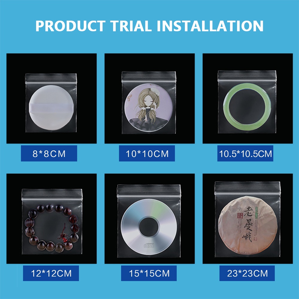 Aplikasi: Tas Ziplock yang Dapat Ditutup Kembali dengan ukuran berbeda cocok untuk berbagai bidang, seperti penyimpanan, pakaian, sepatu, perhiasan, medis, aksesori perangkat keras, dll.